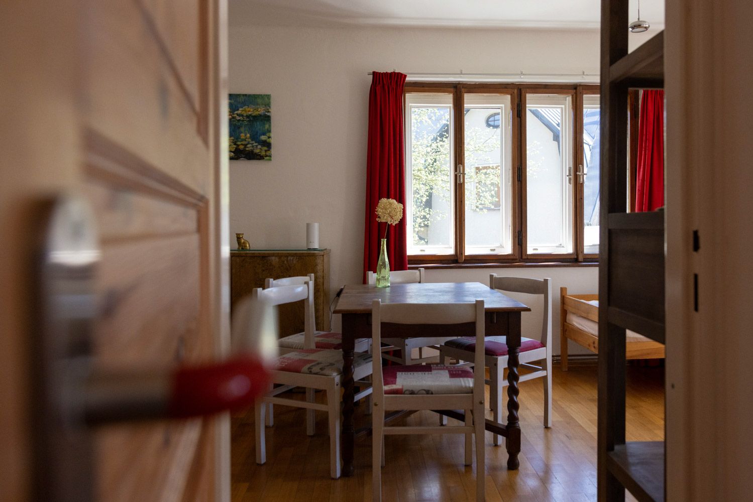 Prostorný apartmán v přízemí nabízí pohodlné zázemí pro rodiny i menší skupiny.